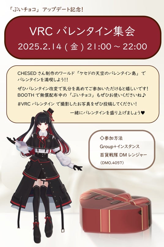 また、2月14日のバレンタインデー当日には、上記ワールドにて大丸松坂屋百貨店がイベントを開催予定です。バレンタインデーをモチーフにしたアバターファッションが奨励されており、『VRChat』のバレンタインデー文化を盛り上げる企画となります。