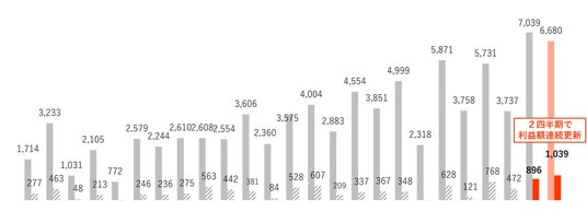 売上高66.8億円(yoy+77.7%)、経常利益9.88億円(yoy+947%)となり、利益における年進捗では43.0%と安定感のある1Q決算となりました。