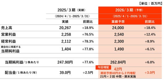 26/3期1Q決算発表および増配・新システムの運用開始についてお知らせします。