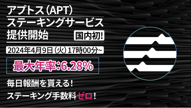 2024年2月に取扱いを開始した『アプトス(APT)』につきましては、2024年4月9日(火)にAPTステーキングサービスを国内初(※)として追加することをお知らせいたします。