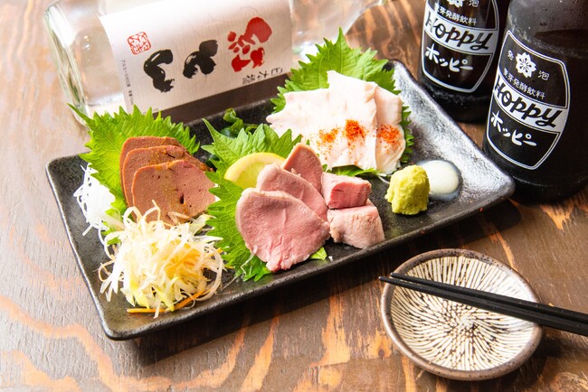 新鮮なモツをあつかう「紅とん」でしか食べられない臭みのない肉刺し