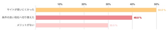 アンケートによれば、取引をやめた理由としては「サイトが使いにくかった(50.0%)」が最も多かった。