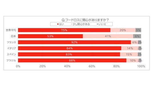◆日本でフードロスに対し強い関心を持っている人は約半数。