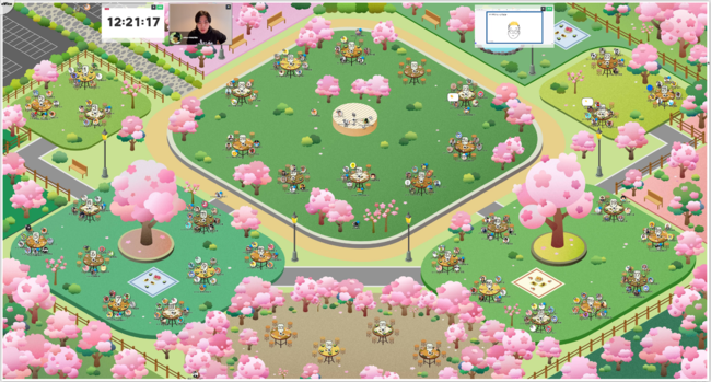 桜が満開のバーチャル空間上に参加者が集まっている様子