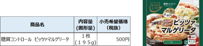 生地の糖質40%off(※)、1枚(195g)あたりの糖質量を38.8gに抑え、イタリア産トマトを使用したソースと、2種類のチーズ(モッツァレラチーズ、パルメザンチーズ)をトッピングし、本格的な味わいに仕上げました。賞味期間/300日 ※日本食品標準成分表2020(八訂)比較