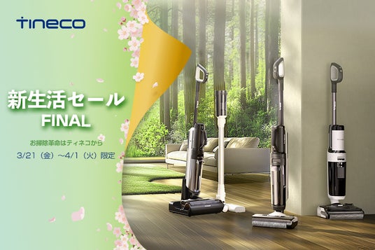 春からの新生活を全力で応援、Tineco JapanはAmazon公式ストアで3月21日(金)から4月1日(火)まで12日間の「Amazon 新生活SALE FINAL」を開催します。引越しにより新生活ニーズにぴったり人気の掃除家電は、現在38%OFF(限定クーポンコードをご利用、※1)でお買い求めいただけるキャンペーンを開催します。