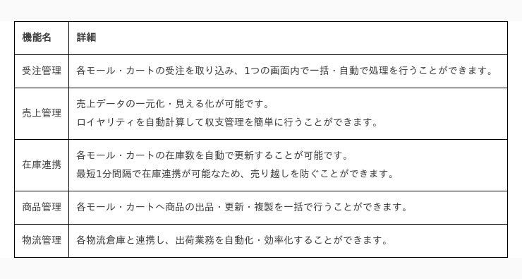 全てのネットショップの受注・売上・在庫・商品情報を1つのシステム内で管理できるため、業務効率を格段にUPすることができます。