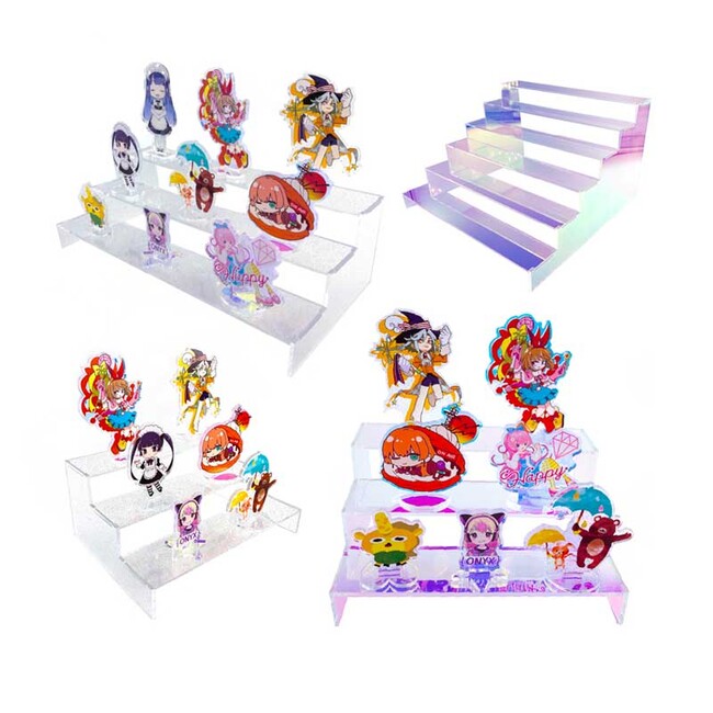 アクリルひな壇を1個からご注文いただけます。サイズや色(クリア・オーロラ・ラメ)など、お客様のご要望に合わせたアクリルひな壇をご用意。高品質なアクリル素材を使用しており、耐久性にも優れたアクリルひな壇。あなたのアクスタ・フィギュアなど魅力を最大限に引き出すことができるアクリルひな壇です。
