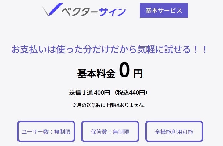 電子署名・タイムスタンプ保管・そのまま保管にかかる送信料のみで始められます。