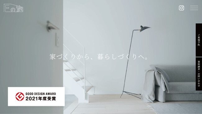 注文住宅ブランド「Fの家」は、デザイン・設計力、高性能、コストパフォーマンス等が総合的に評価され、2021年度グッドデザイン賞を受賞しております。