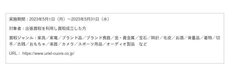 出張買取ページ:https://www.uriel-cuore.co.jp/visit/