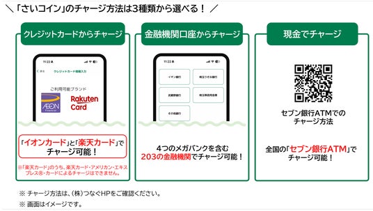 ・さいコイン:指定のATM又は金融機関口座・クレジットカードによりチャージいただける電子マネーで、全ての加盟店でご利用いただけます。