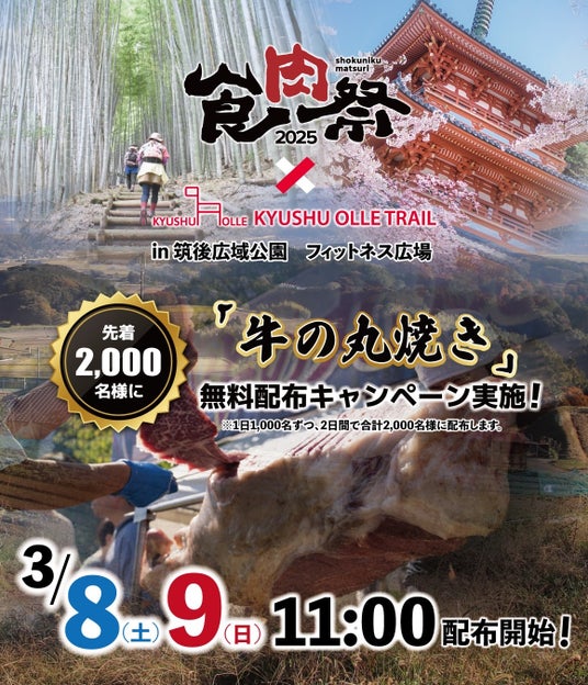 また、昨年2024年10月に福岡県北九州市で開催し、3日間で53,000人が来場した「食肉祭」が、筑後広域公園フィットネス広場にて3月8日(土)~3月9日(日)に開催します!