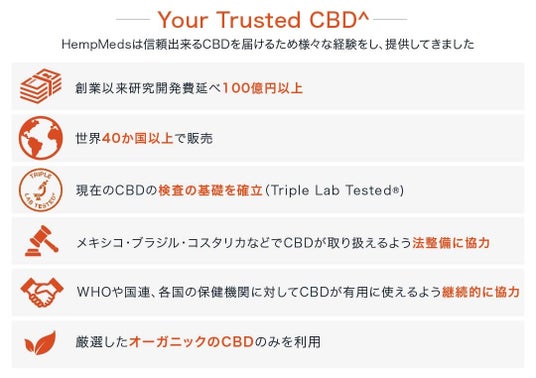 特徴的なCBDオイルと製品HempMedsは製品開発に延べ100億円以上費やしているCBD業界では研究開発費が最も多いブランドのうちの一つです。