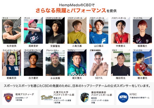 HempMeds(ヘンプメッズ)は、スポーツとスポーツを通じたCBDの発展のために、日本のトップリーグのチーム、アスリートをサポートさせて頂いております。