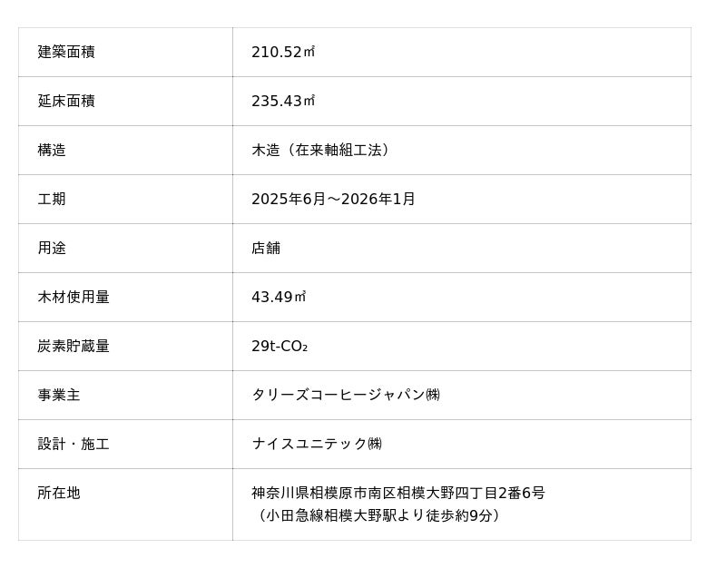 「タリーズコーヒー ロースター相模大野中央公園店」建築概要