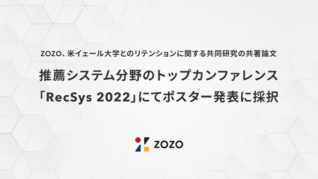 ファッションEC「ZOZOTOWN」を運営する株式会社ZOZOは、ZOZOTOWN上でのサービス機能のさらなる拡充と、長期的な顧客価値の最大化を目指し、2020年2月より、米イェール大学経営大学院マーケティング学科准教授である上武康亮氏との共同研究を開始しました(※1)。このたび、その研究内容の一つである、リテンション(※2)に関する共著論文「When to Target Customers? Retention Management using Dynamic Off-Policy Policy Learning(顧客にコンタクトをする最適なタイミングはいつか?動学的最適戦略学習理論によるリテンション最大化)」が、推薦システム分野のトップカンファレンス「RecSys 2022」(※3)にてポスター発表に採択されました。