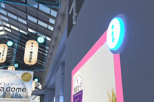 メタバース内の壁等に掲載されている広告画像のiマークをクリックすると、外部サイトまたは3D出展ブースへのショートカット移動が可能となります。ユーザーがアバターを通じて『Vma plus Station』のメタバース空間内で魅力的な広告を見つけた場合、iマークをクリックするだけで外部サイトが別タブで開きます。また、同じくメタバース内の広告画像のから、メタバース空間内の3D出展ブースへ直接移動する事も可能です。これらの新機能の導入により、メタバース空間内の広告宣伝の効果拡大が期待でき、最新技術を駆使したマーケティングツールとして活用の幅が広がります。