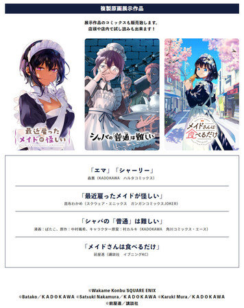 の5作品から複製原画を展示。展示作品のコミックス販売も予定しております。