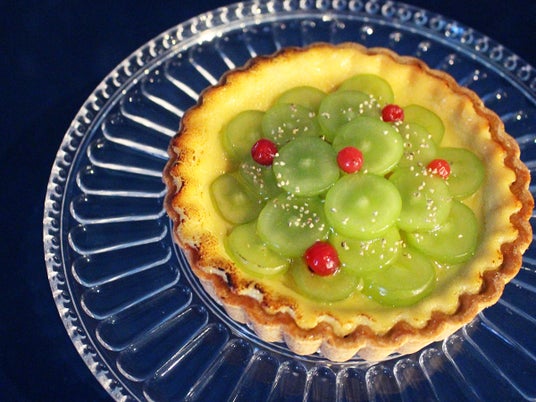 特製の焼きプリンのフィリングに旬のシャインマスカットを贅沢にのせた秋限定のパイ。