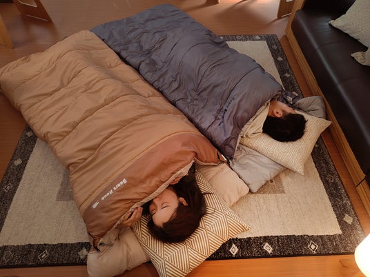 布団のようにふわふわで暖かく、寝袋と同じ中綿と生地を使っているため保温性に優れており、軽量でコンパクトに収納することができます。