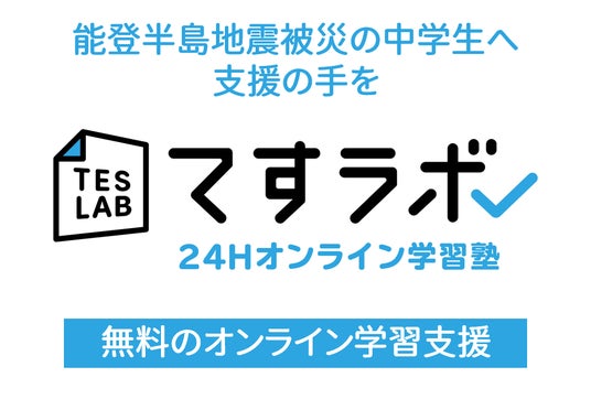 てすラボ24時間オンライン学習塾は2024年1月より、能登半島地震の影響で学習サービスの受講が困難になっている石川県、新潟県、富山県の中学生のために、「てすラボ24時間オンライン学習塾」の英語と数学のオンライン映像授業サービスを無料で提供しています。