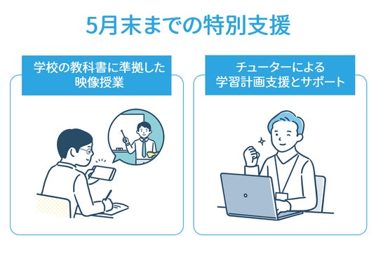 2.学習で使用するペーパー教材に関しては今回の特別支援では用意がありませんので、オンライン映像授業の提供のみ無料となります。ペーパー教材の内容は全て映像学習内で確認できるので問題なく学習を進める事ができます。
