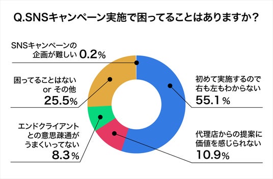 また、「何をすれば良いか分からない」「魅力的な提案を得られない」「企画が難しい」と、SNSキャンペーンの「ノウハウ不足」に悩んでいる企業は、66.2%に及んでいます。