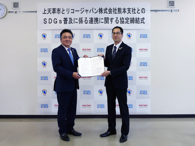 リコージャパン株式会社 熊本支社(支社長:前田 慎)は、熊本県上天草市(市長:堀江 隆臣)と熊本県内では初となる「SDGs普及に係る連携に関する協定」を5月11日に締結しました。