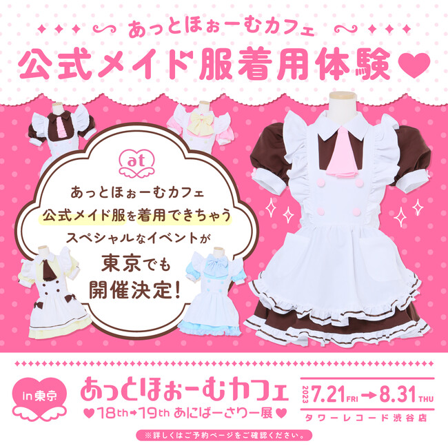 この度は、「あっとほぉーむカフェ × TOWER RECORDS ~笑顔あふれる場所~」年間取組み最後の第4弾として、名古屋、大阪と大好評の中終了した【あっとほぉーむカフェ18thあにばーさりー展】に続き、タワーレコード渋谷店8F ≪SpaceHACHIKAI≫にて、18周年から19周年を跨いだ「あっとほぉーむカフェ(ハート)18th→19thあにばーさりー展(ハート)in東京」を開催いたします。
