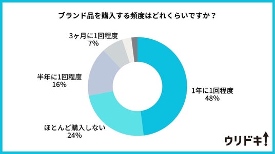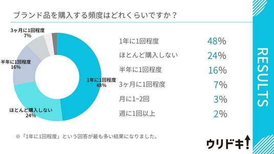 『ブランド品を購入する頻度』について、「1年に1回程度」の意見が多い結果となりました。