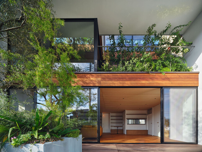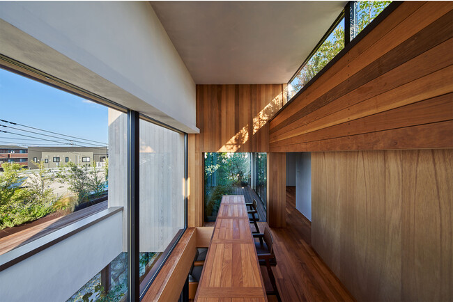 2.この地域独特の、植物を共有する「株分けネットワーク」に参加し、それが顕現される場を作るために、建築内外に断面配置された植物が、通りから一望できる構成とした。