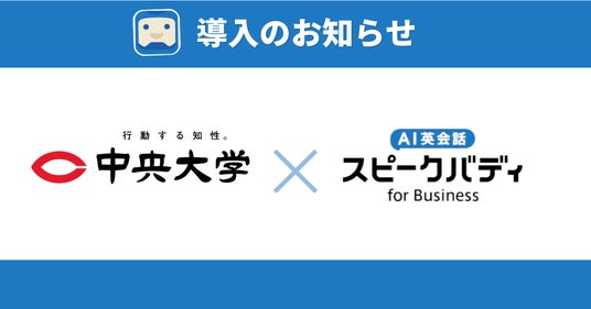 AI英会話アプリ「スピークバディ」の開発・運営を行う株式会社スピークバディ(本社:東京都中央区、代表取締役社長:立石剛史、以下「当社」)は、当社が提供する同アプリについて、中央大学で導入されたことをお知らせします。