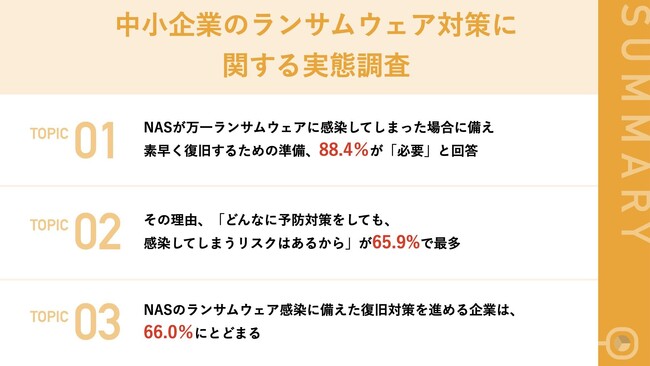 ~ しかし、NASの復旧対策を進める企業は66.0%にとどまる。背景には「予算不足」や「方法が分からない」といった課題あり ~