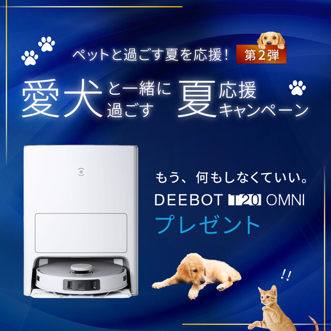 第2弾の「愛犬と一緒に過ごす夏応援キャンペーン」では、Twitter・Instagramで投稿された方の中から抽選で1名様に、犬との暮らしにぴったりな「DEEBOT T20 OMNI」をプレゼントいたします。