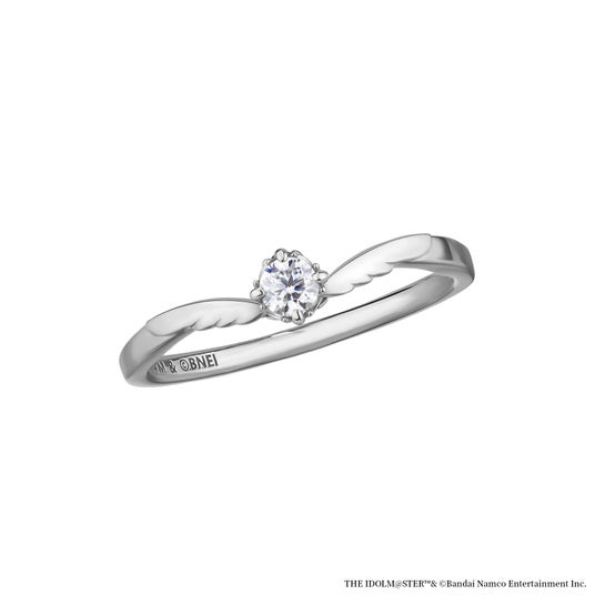 ペガサスマークからインスパイアされたハートと羽をメインに、10周年という大きな節目を迎える「アイドルマスター シンデレラガールズ スターライトステージ」を象徴するような魅力的なデザインに仕上げました。センターには地球上で最も輝くと言われる「モアサナイト」をセッティングし、何よりも輝きを放つアイドル達と、何年経っても変わらないプロデューサーの絆を表しています。