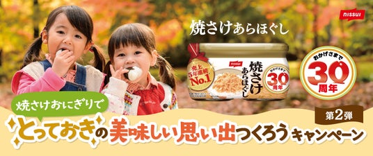 株式会社ニッスイ(代表取締役社長執行役員 浜田 晋吾、東京都港区)は、「焼さけあらほぐし」(びん詰)の発売30周年を記念したプレゼントキャンペーンの第2弾として、「とっておきの美味しい思い出つくろうキャンペーン」を9月2日から10月31日の期間で実施します。