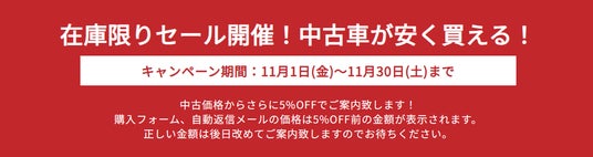 ・キャンペーン概要:中古車両の販売価格から、さらに5%OFF