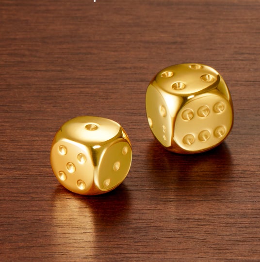 「K18 ダイス」は、角を落とした丸みのある形状で、ころころと転がるごとに艶めくよう鏡面で仕上げました。美しく均等な立方体となるよう、仕上げの際には職人がひとつずつ重量のバランスを調整しながら手作業で磨き上げています。日本ではダイス(サイコロ)はどこへ転がっても必ず「目が出る」ことから「芽が出る」、「災を転じる」などの語呂合わせが生み出され、縁起物としても親しまれています。ダイス自体は古代から存在し、遊具や占いなどに使われていたアイテムのため世界各地で様々な素材のものがありますが、ギンザタナカが販売する「K18 ダイス」は、K18製ならではの重量感と輝きを楽しめます。