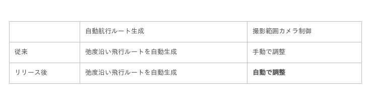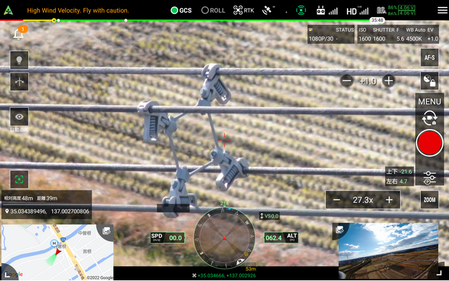 スペーサ向けの点検撮影飛行モードが追加されたため、より活用範囲が広がりました。送電線(架空地線・電力線)をカメラが自動追跡する撮影モードを実装したことにより、より効率的に点検が可能となりました。さらに、中部電力パワーグリッドのノウハウを基に開発した機能を追加、ユーザビリティを改善しました。