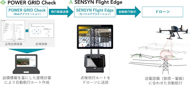 3. 『POWER GRID Check』からルート情報を、『SENSYN Flight Edge』に送信