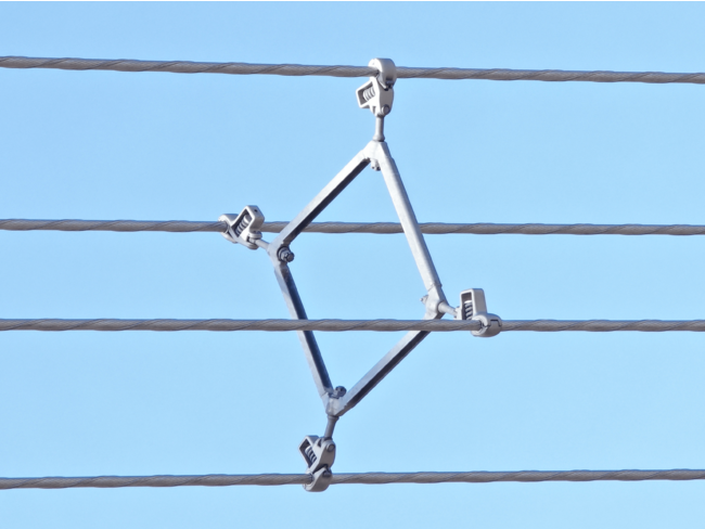 従来バージョン『POWER GRID Check』の送電線点検撮影飛行モードは、電線に対しドローンが正対した状態での飛行しかできなかったため、スペーサの電線把持部が視認できない課題がありました。今回のバージョンアップにより、スペーサの電線把持部が視認可能となる弛度沿い飛行制御アルゴリズムを実装し、スペーサの状態を確認できるようになりました。