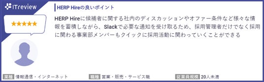 事業内容:採用管理システム『HERP Hire』の開発・提供、タレントプールシステム『HERP Nurture』の開発・提供、採用コンサルティング事業の提供、人材紹介会社向け求人管理システム『ジョブミル』β版の開発・提供、スタートアップ・ベンチャーの最新求人情報を提供する求人媒体『HERP Careers』β版の開発・提供、オンライン完結型リファレンスチェックツール『HERP Trust』の開発・提供