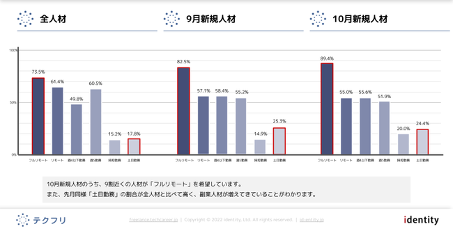 ・10月新規人材のうち、9割近くの人材が「フルリモート」を希望しています。