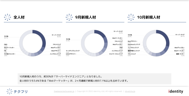 ・全人材のうち3.6%である「Webマーケッター」が、2ヶ月連続で新規人材の7.1%以上を占めています。
