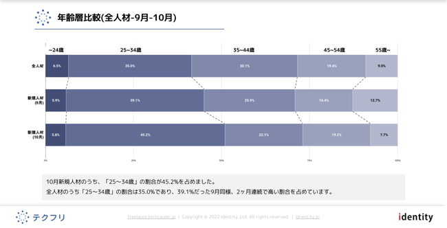 ・10月新規人材のうち、「25~34歳」の割合が45.2%を占めました。