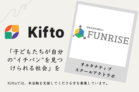 寄付をすると、NFT画像(NPO活動画像など)が届く、新たな寄付サービス「Kifto」にて、寄付の募集を開始!寄付で応援してくださる方、お待ちしております!
