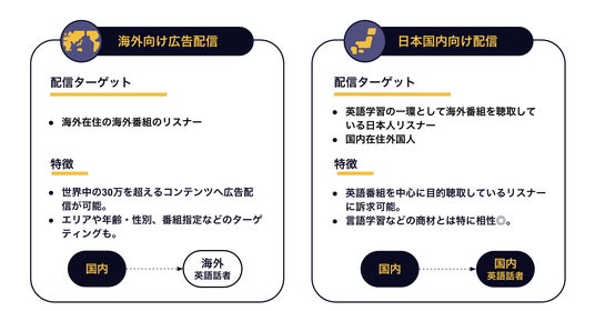配信ターゲット(例):英語学習の一環として海外番組を聴取している日本人リスナー/国内在住外国人