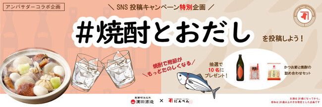 その第1弾として、10月23日(月)から11月23日(木)まで、「#焼酎とおだし かつお節やだしを使った焼酎に合うおつまみレシピ投稿キャンペーン」を実施いたします。