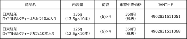 三井農林株式会社(所在地:東京都港区、代表取締役社長:佐伯 光則)では、「日東紅茶 ロイヤルミルクティーはちみつ10本入り」「日東紅茶 ロイヤルミルクティーデカフェ10本入り」を2022年8月29日(月)より新発売いたします。